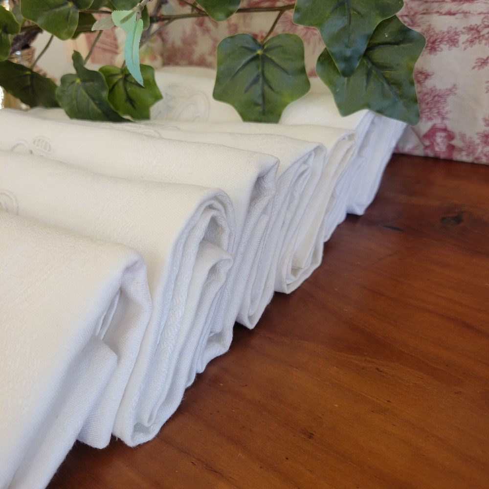 12 Serviettes Blanches Damassées