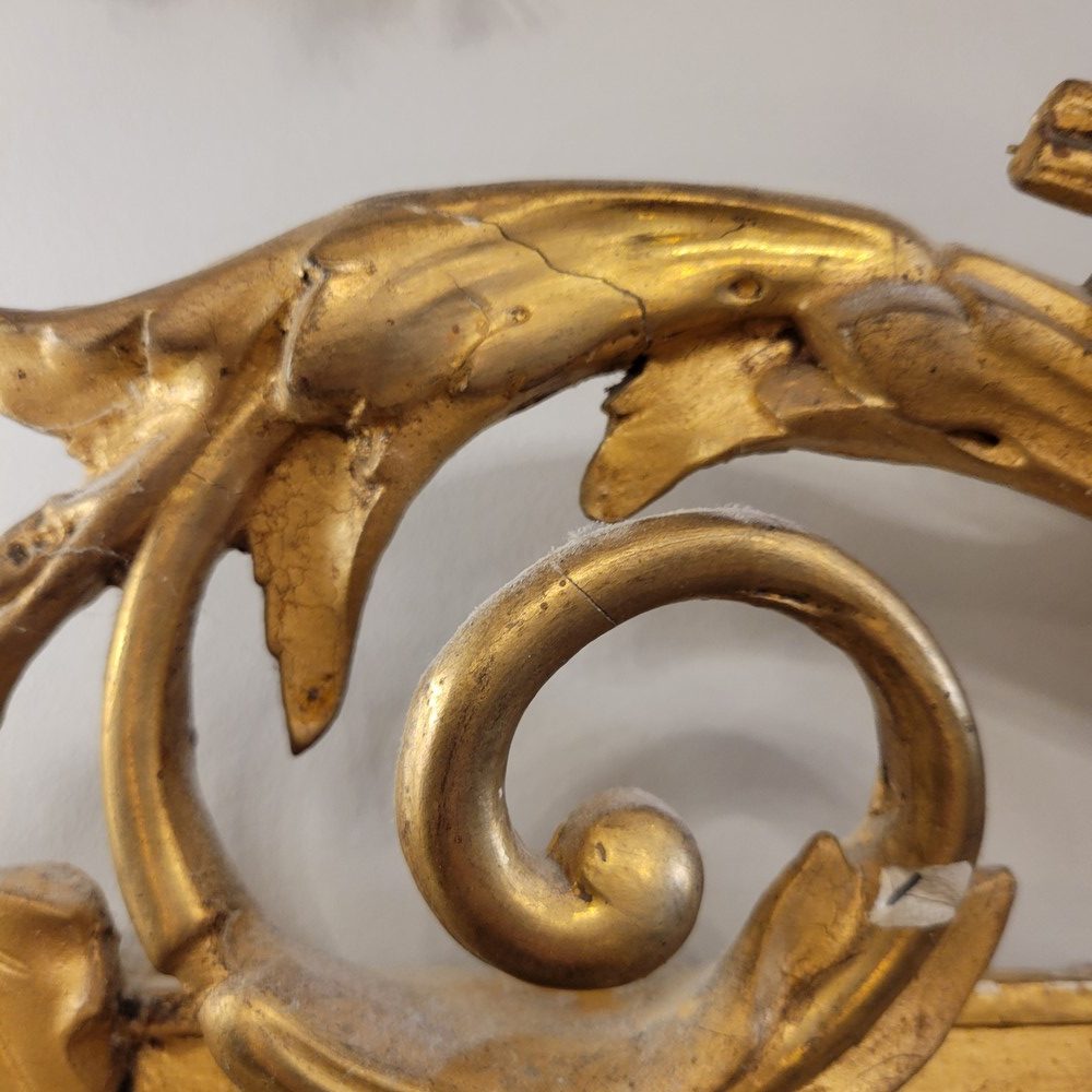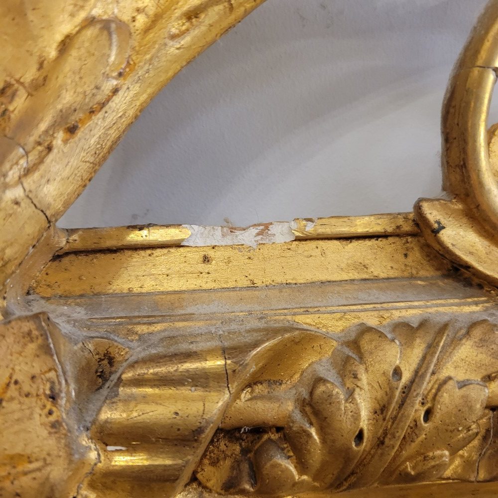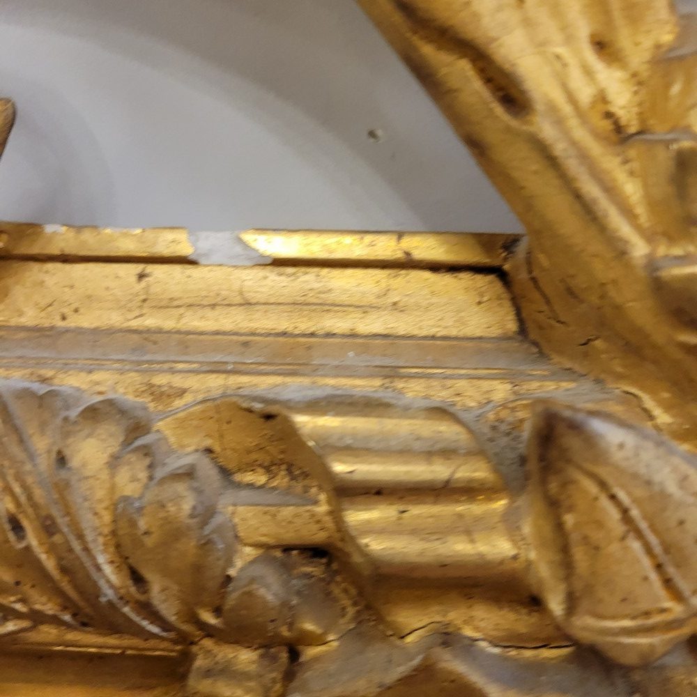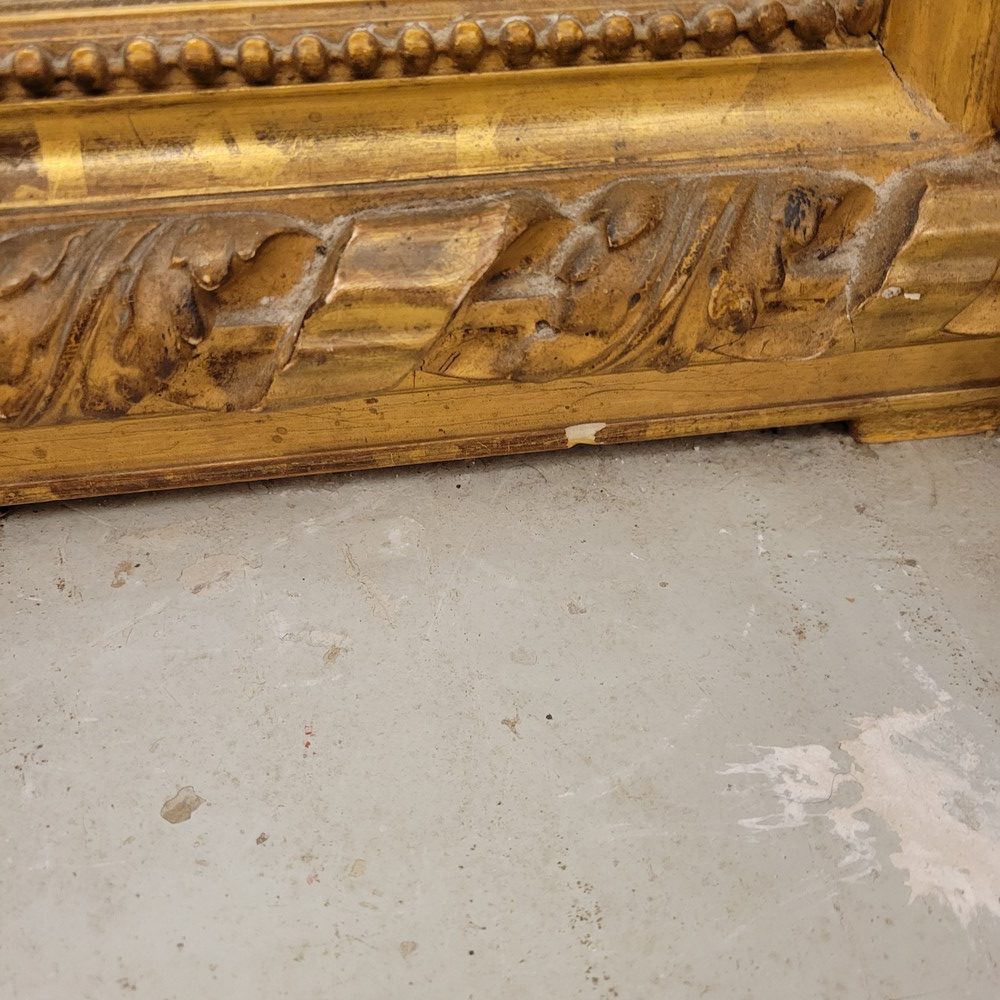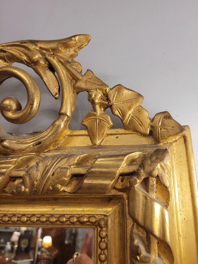 Grand Miroir d’époque Napoléon III en bois et stuc doré à décor de vase fleuri et de flèches entrecroisées. Miroir d’origine. Vendu en l’état. Quelques petites restaurations sont à prévoir mais il est tout à fait présentable dans son état actuel. cf. les photos.