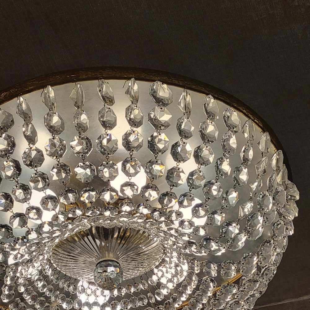 Grand plafonnier à guirlandes de pampilles en verres, dans l’esprit des lustres montgolfières Napoléon III. D’époque 1900, l’électricité a été entièrement révisée.