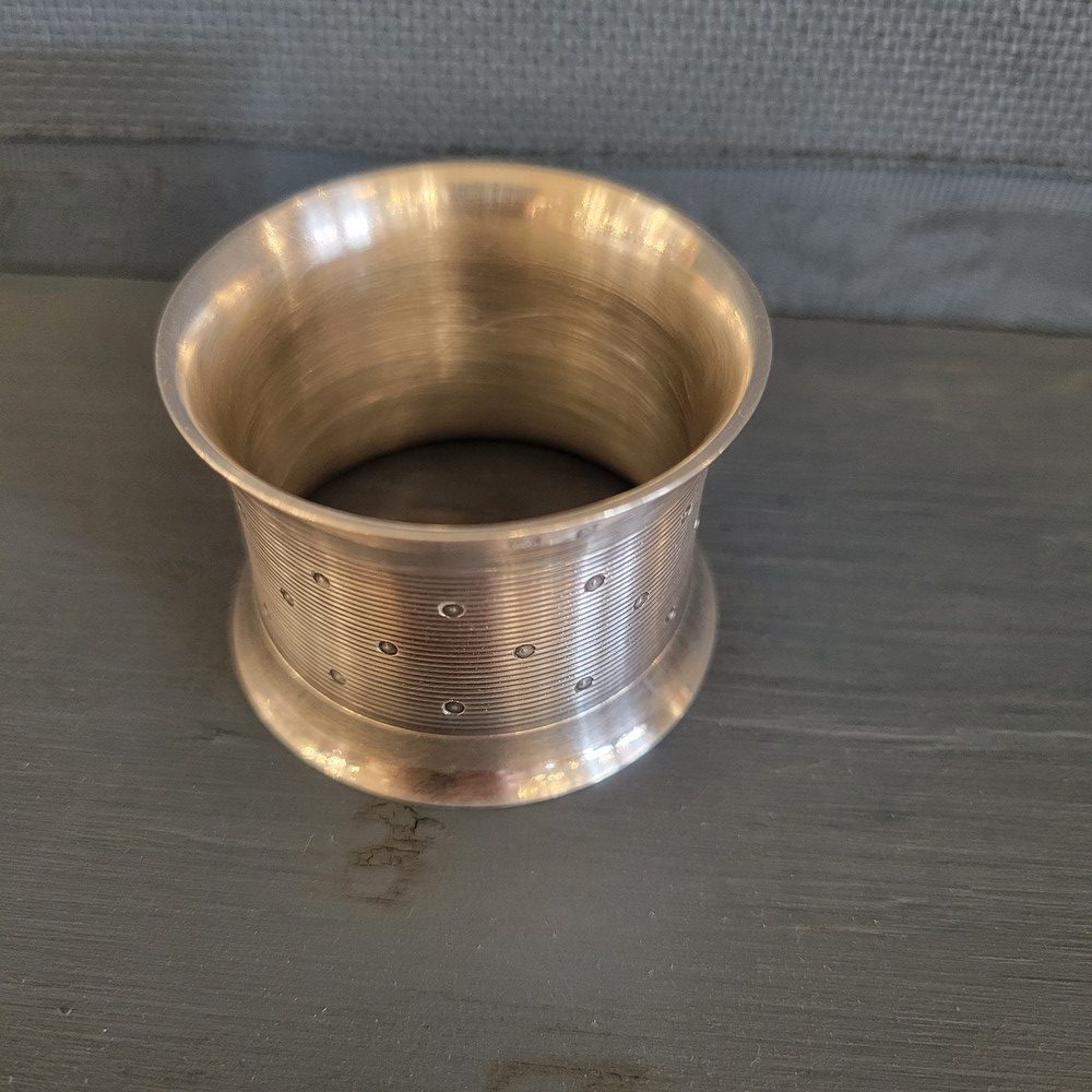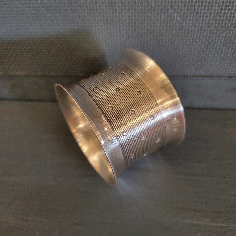 Rond de serviette en métal argenté . Modèle guilloché des années 1930. Bon état.