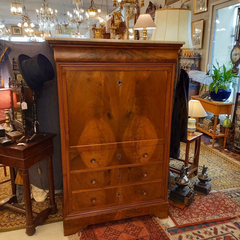 Secrétaire de style Louis-Philippe, Fin XIXè Noyer, Marbre blanc Meuble à secrets Prix : 880€